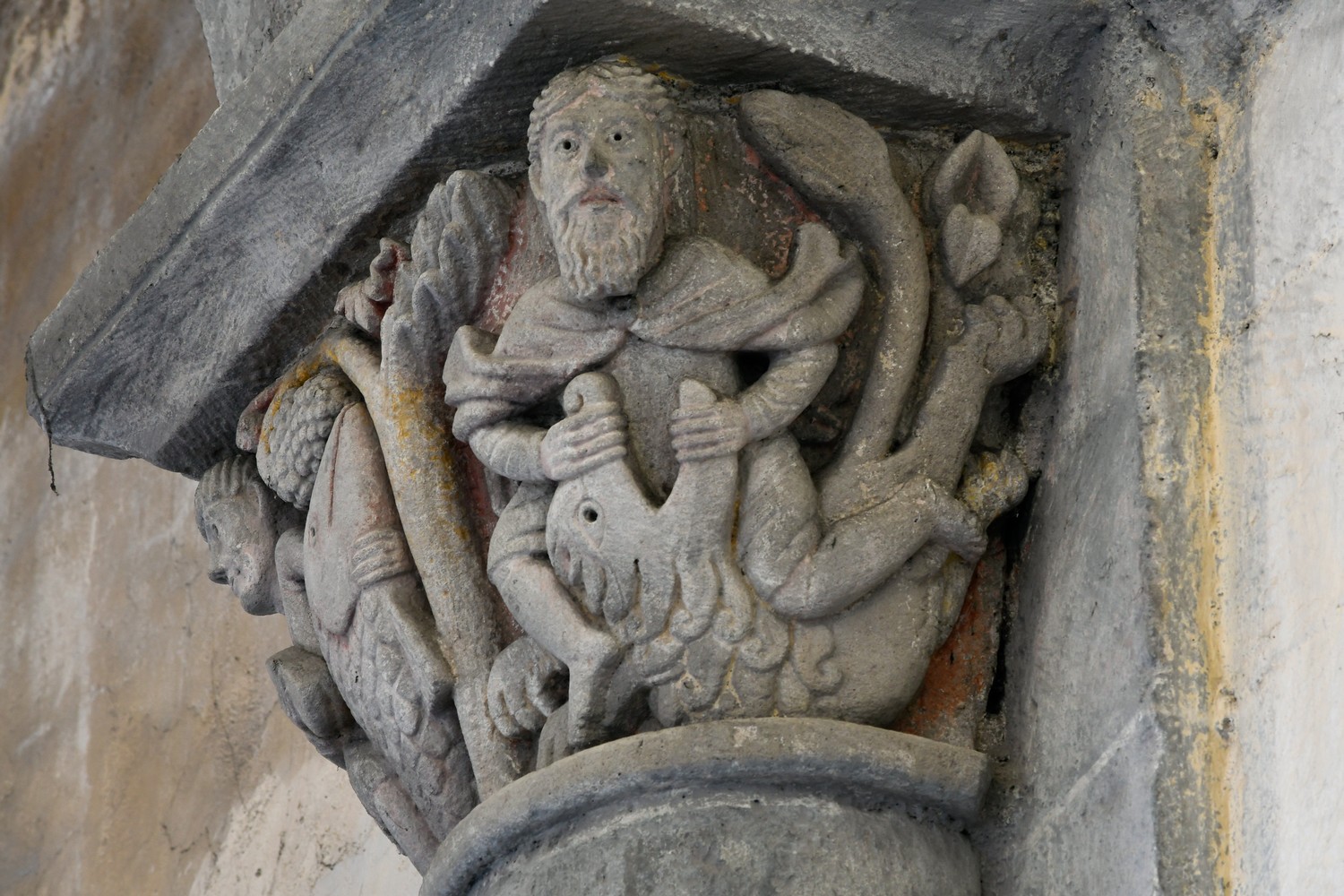 Samson au premier plan, Tobie derrière. Abbatiale de Mozac (Puy-de-Dôme).